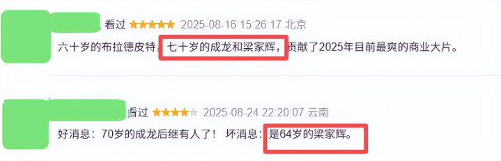 就连今年大爆的口碑动作片《捕风追影》都没能逃过观众的吐槽——“好消息,70岁的成龙后继有人了,坏消息,是64岁的梁家辉”。