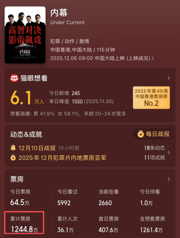 但结合其4000万的成本来看,这种成绩已经称得上相当惊喜,正午阳光都赢麻了。